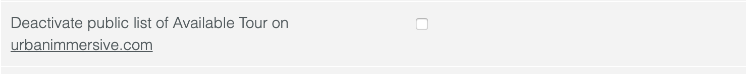 2. Check "Deactivate public list of Available Tours on urbanimmersive.com.
